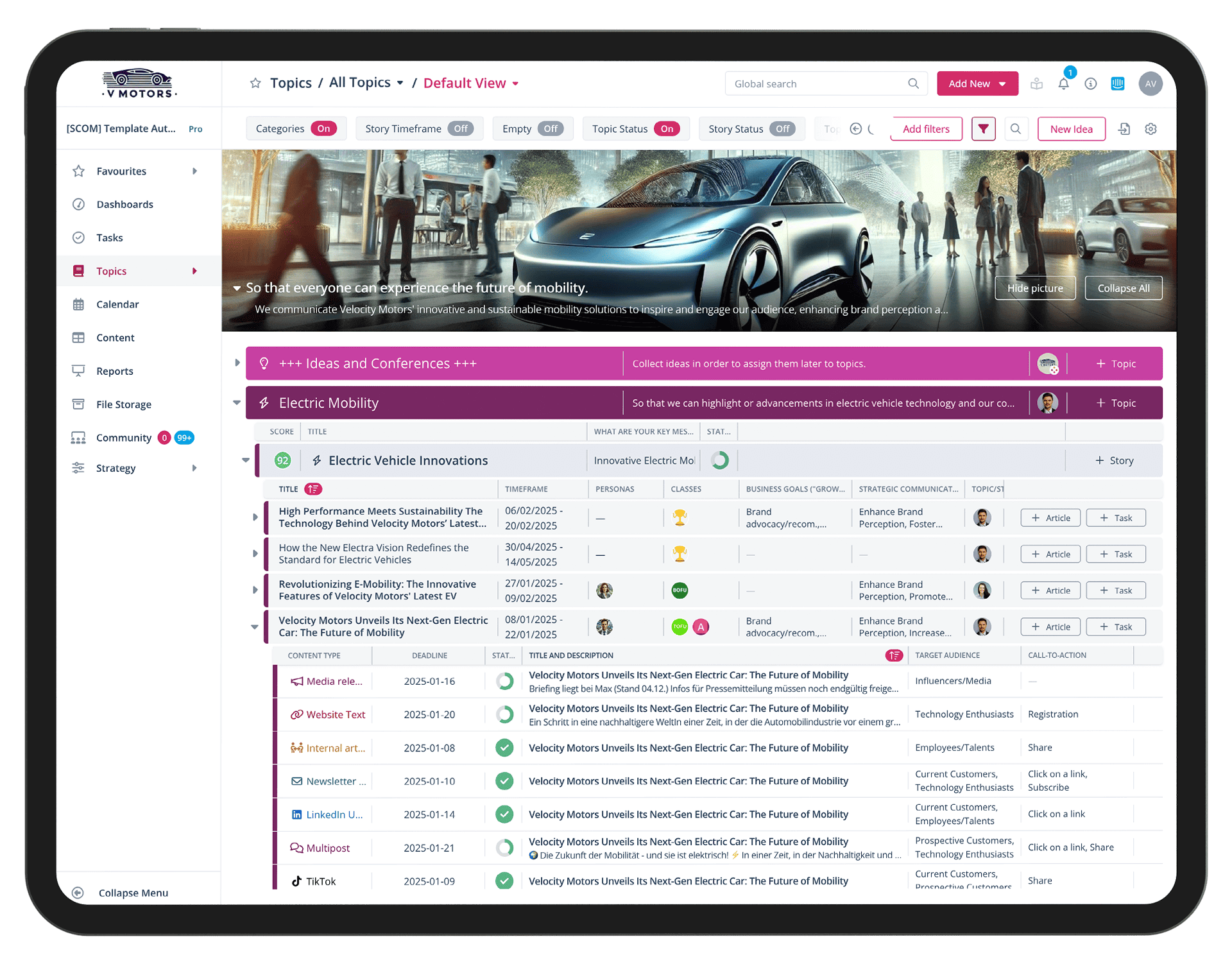 Für eine gute Kommunikation braucht Ihr gute Themen. Einfach nur mal ein paar Themen über verschiedene Kanäle zu streuen, führt nicht weiter. Mit Scompler könnt Ihr Eure Themen perfekt strukturieren, scoren und planen.
