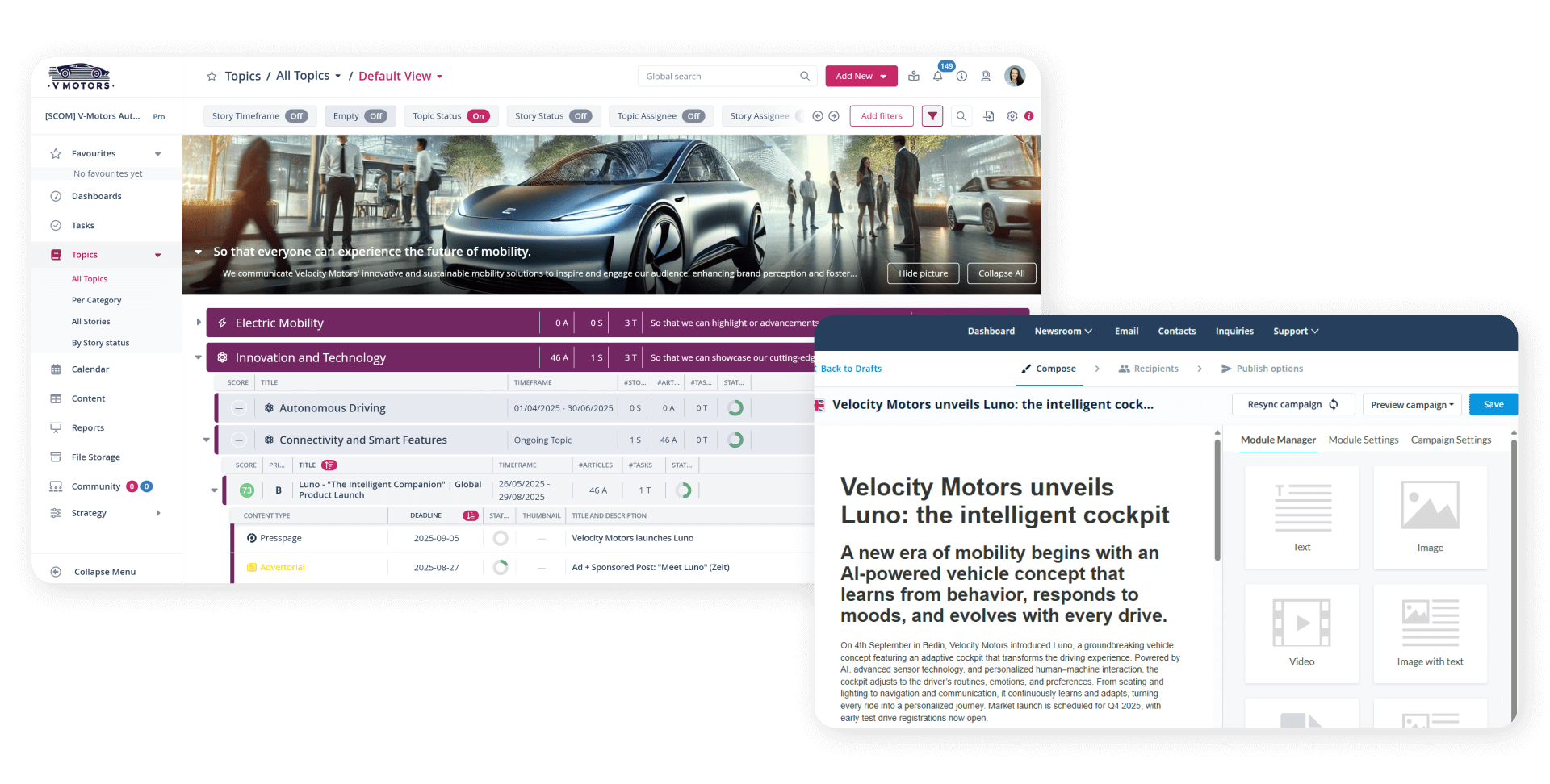 „Integrieren Sie Pressemitteilungen ins strategische Kommunikationsmanagement. Direkt von der zielgerichteten Planung zur wirkungsvollen Veröffentlichung – vollständig aufeinander abgestimmt und ohne Medienbrüche in einem einzigen Workflow“, so Erik Pauli, Head of Product bei Scompler Technologies GmbH.